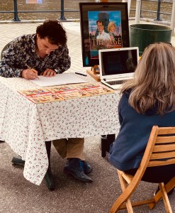Matt Gauthy « croque » une fan, sous la tonnelle blanche et sobre de son stand de promo. Je patiente… C’est mon tour!