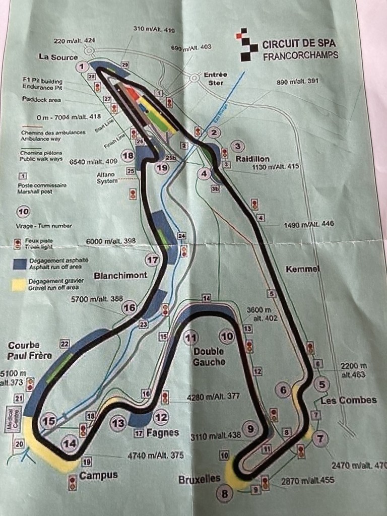 C’est l’effervescence générale. De nombreux bolides sillonnent à plein tube les 19 virages de ce circuit posé dans le cadre magnifique et verdoyant de la fagne belge. Ce contraste paradoxal est absolument ahurissant, amplifié par un dénivelé topographique caractéristique de la région.