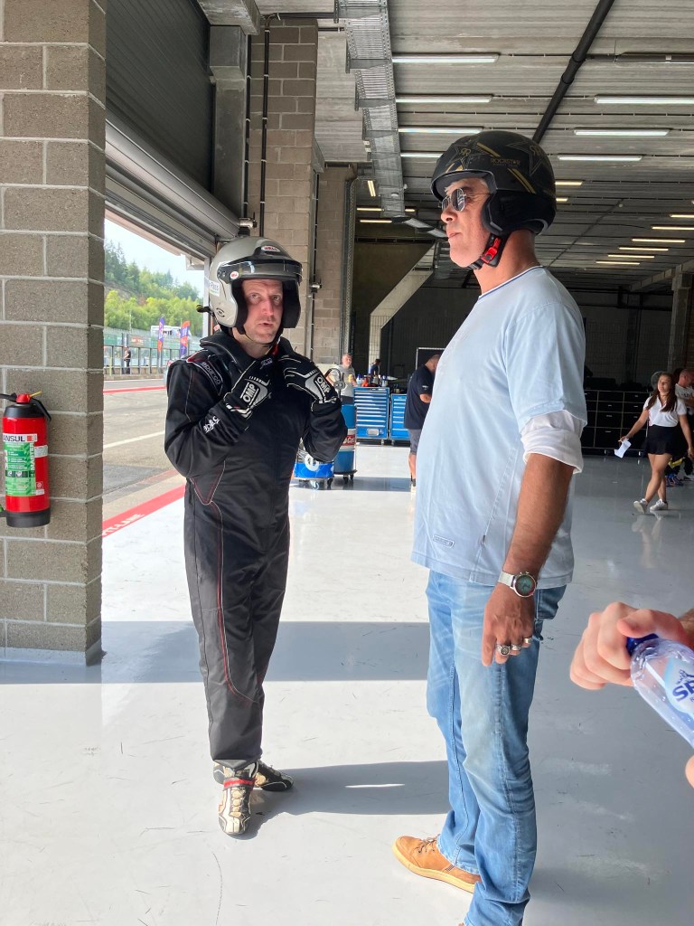 A chaque passage devant le « paddock », j’aperçois Laurence et Pierre à la terrasse VIP, leur faisant signe que tout est ok pour moi. Dans le troisième tour, à « Kemmel », au fond du « Raidillon », nous dépassons un plus petit véhicule par la droite, je suis sidéré par une Porsche GT4 nous dépassant à droite avant de plonger devant nous dans les « Combes »… Le « Double gauche » après « Bruxelles » est négocié par Chris’ à la corde, tel un « équilibriste » dont le soucis est que je profite d’une belle expérience (sic). C’est le moins que l’on puisse dire! C’est formidable…