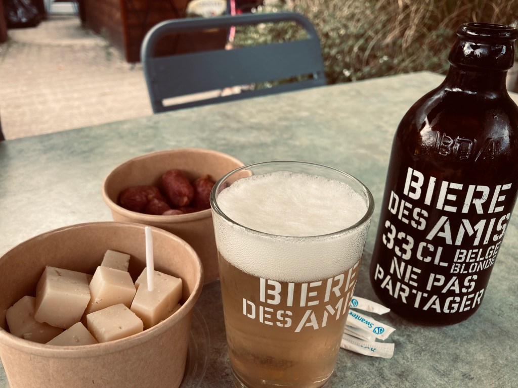 Jouissant d’un soleil généreux en ce jour férié (et fait rien aussi…), nous sirotons un bon verre à la terrasse du cru… On est pas si mal, tout de même…