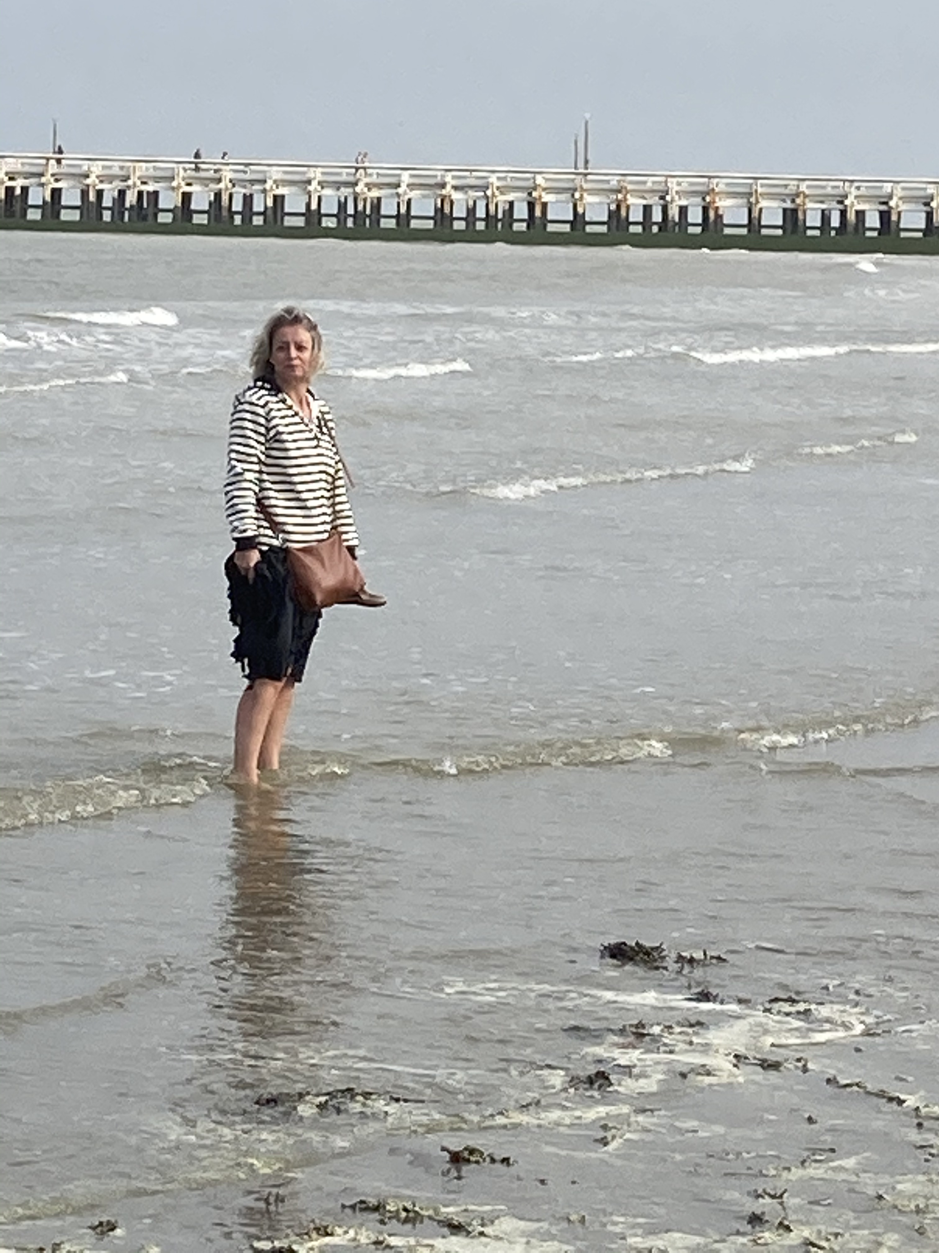 La marée est haute, un vent très léger nous caresse les joues, nous marchons sur la digue qui s’étend sans fin devant nous. Peu de lieux offrent à ce point la possibilité de perdre le regard dans trois directions simultanées…