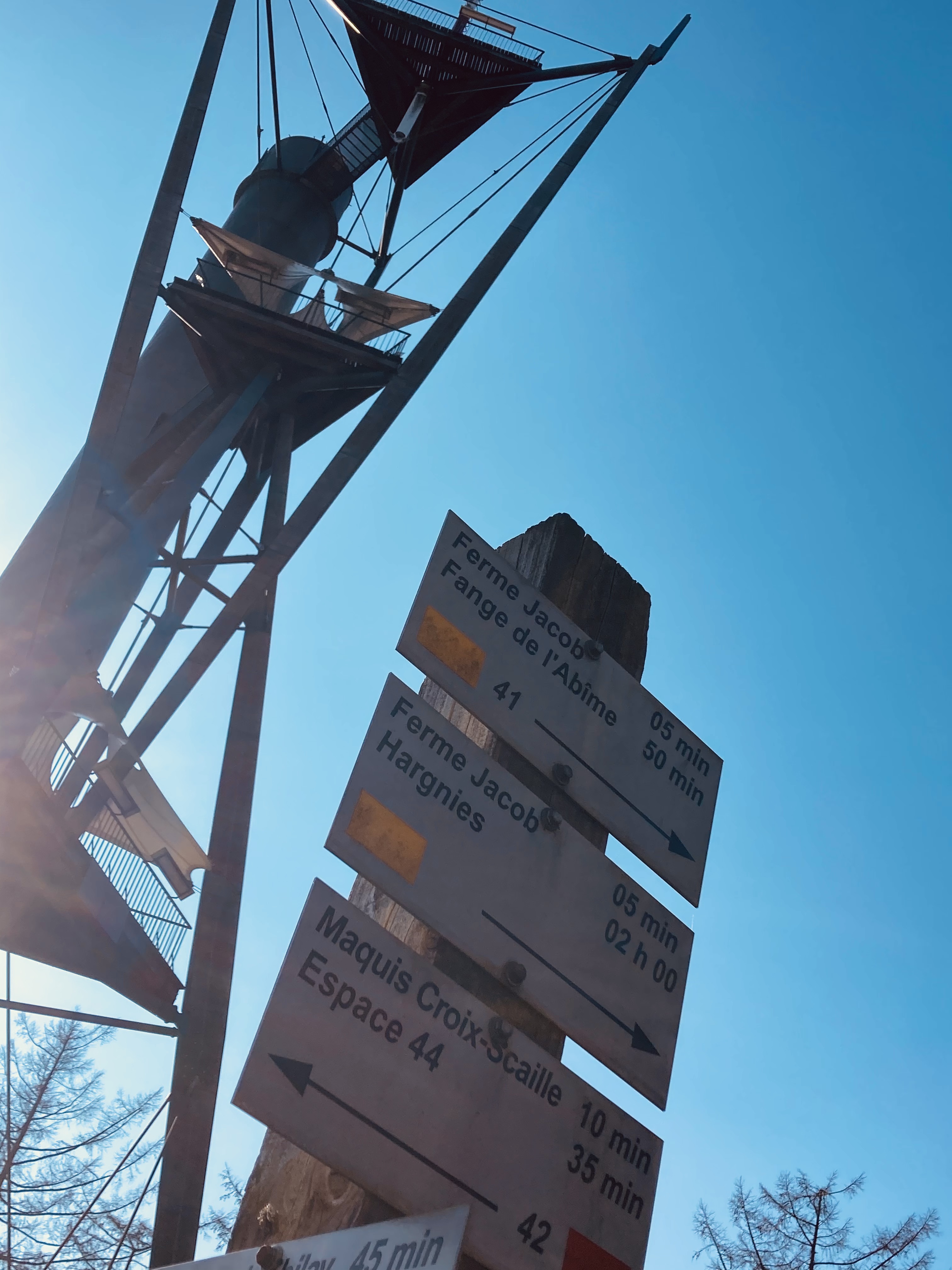Reconstruite en acier et inaugurée en 2012, les trois plateformes de 15, 30 et 45m de hauteur se dressent à nouveau sur le plateau de la « Croix Scaille » culminant à 503m d’altitude.