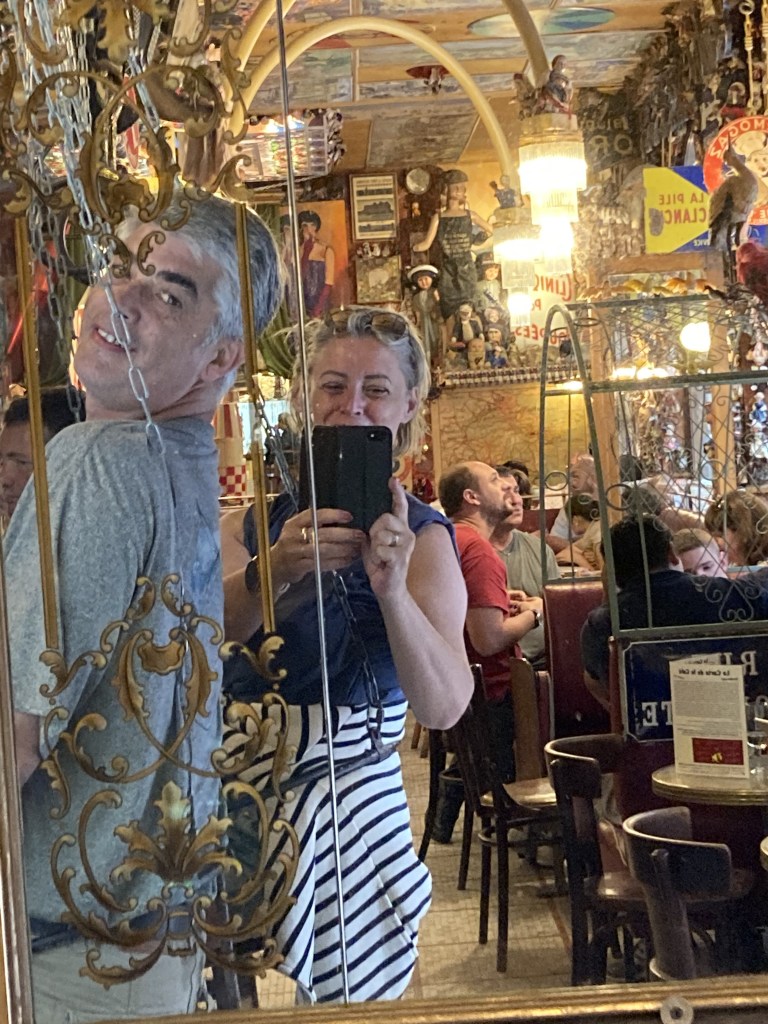 La vieille ville, nommée « Intra-muros », est littéralement phagocytée par les touristes et les malouins se plaignent du « boum » de l’immobilier qui a fait exploser les prix des loyers commerciaux ou d’habitation. Cela ne contribuera pas à notre meilleur souvenir, cependant, un bar très ancien retient particulièrement l’attention de Laurence (mon amoureuse)…