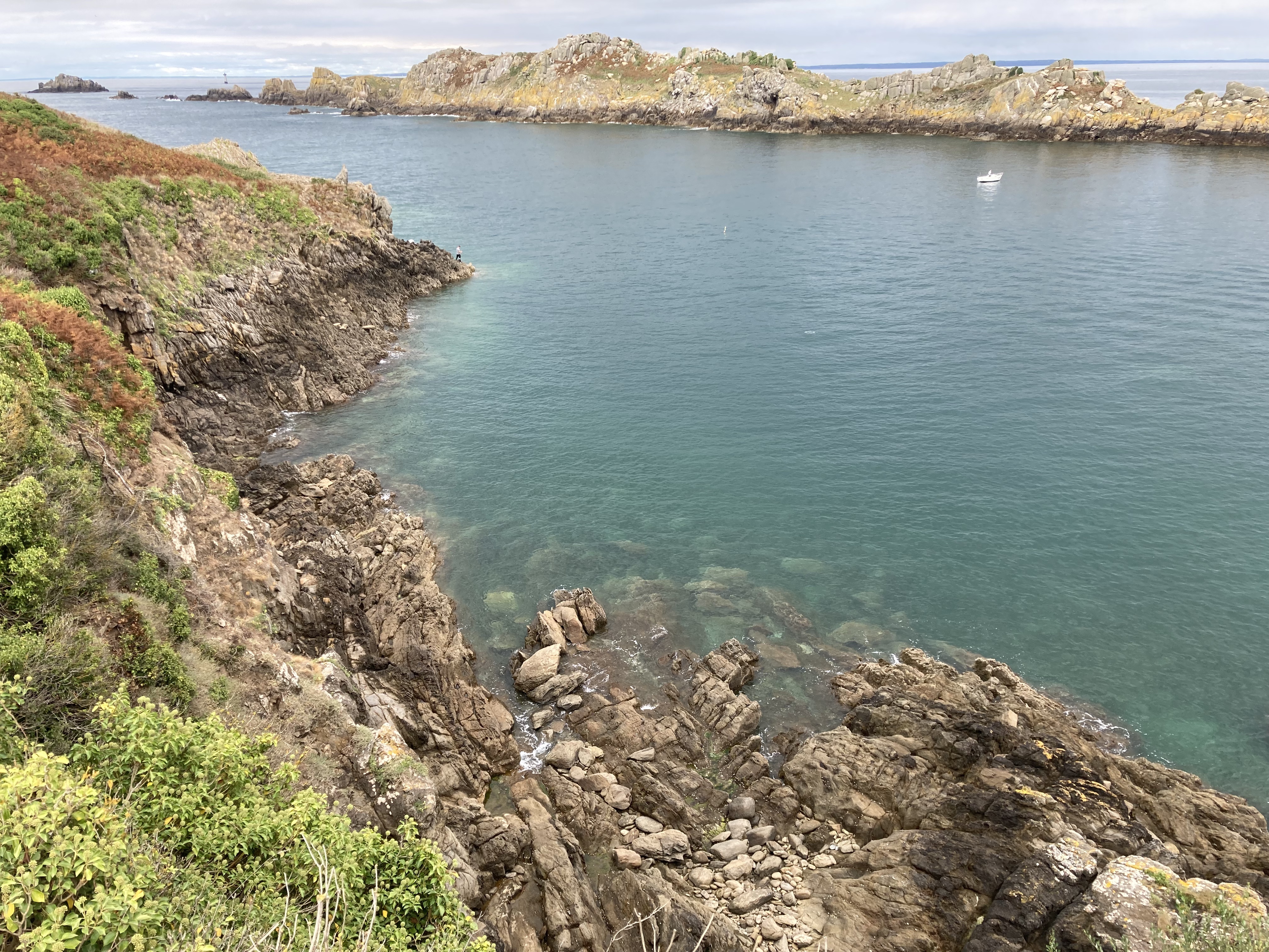Le ciel est nuageux et le vent nous fouette quelque peu, selon notre exposition au large, au fil des circonvolutions côtières…