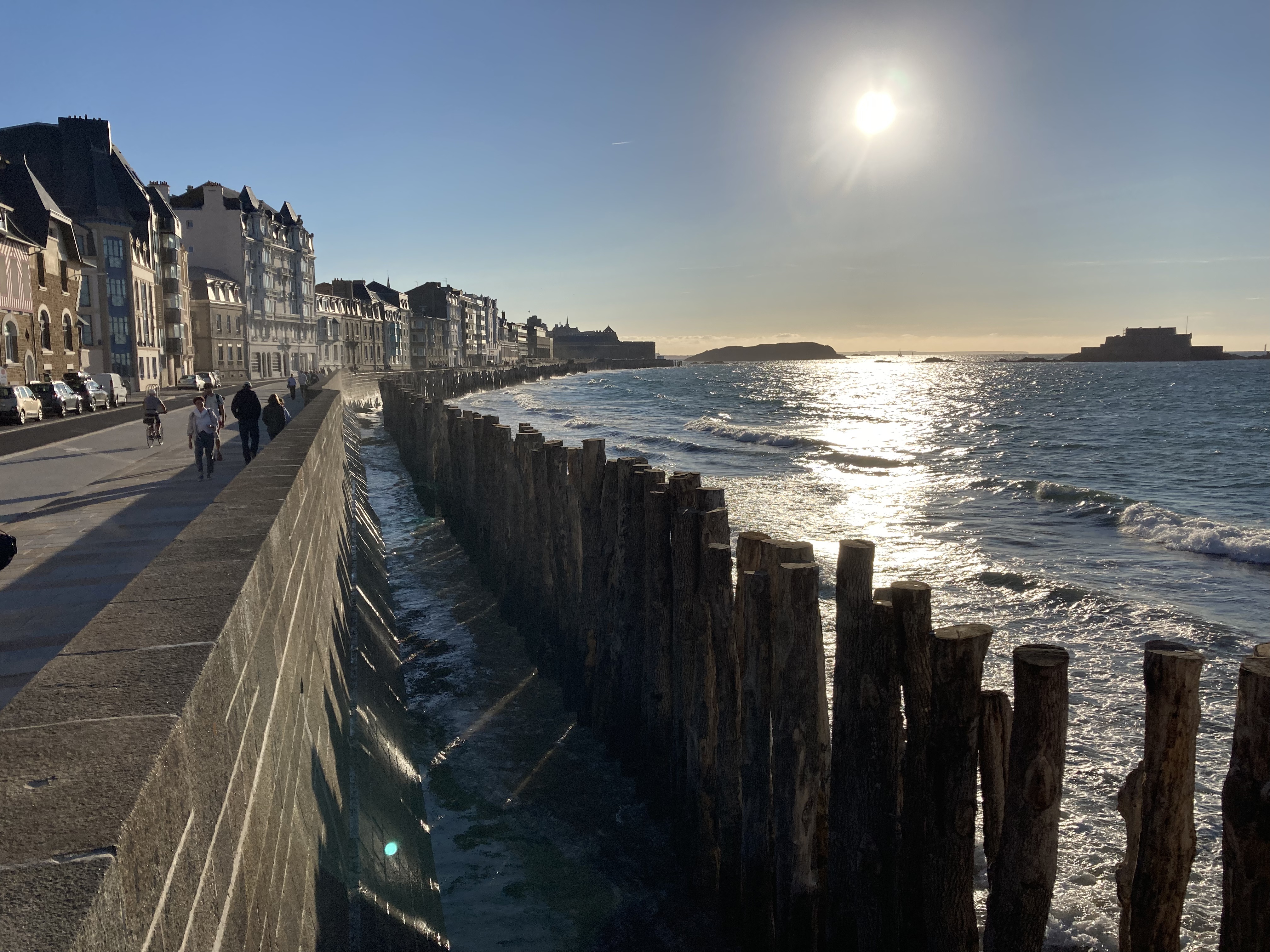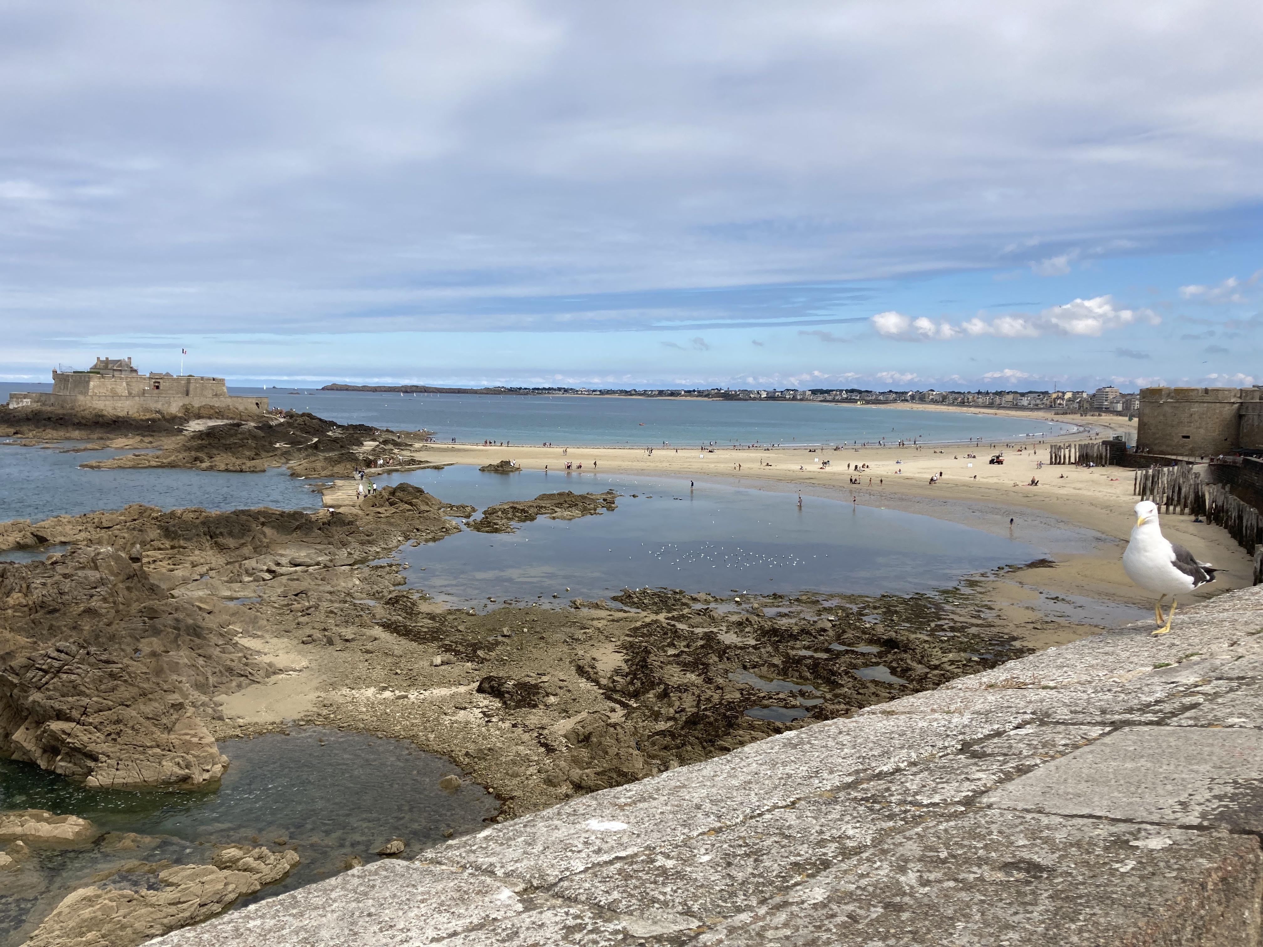 Avec des coefficients de marées avoisinant 88 en fin de séjour, nous avons pu admirer les vagues titiller les digues en pierres de Saint-Malo qui en a vu d’autres lors de marées exceptionnelles à 110, auxquelles s’ajoutèrent parfois une pleine lune et des vents à décorner des boeufs…