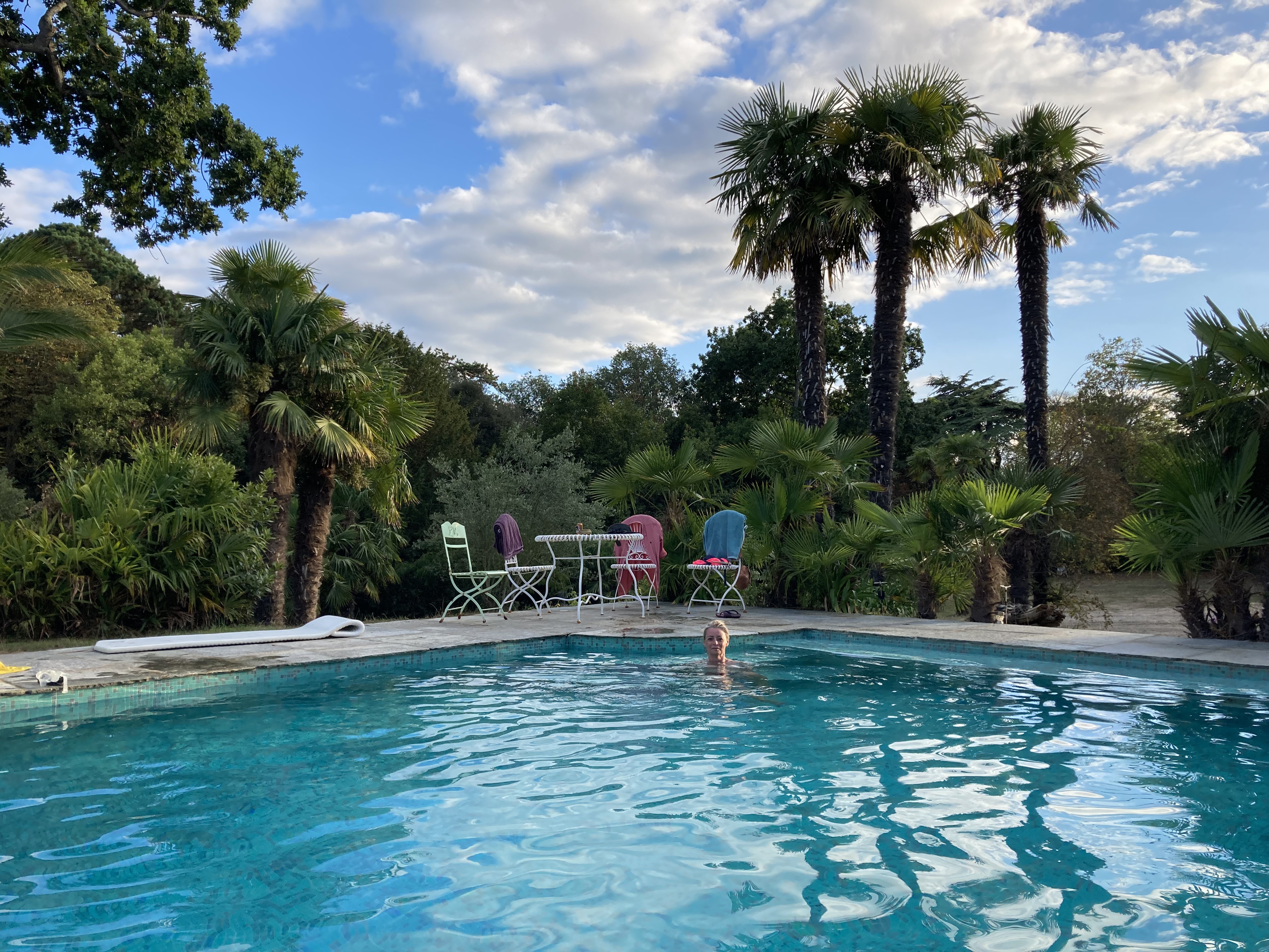 De retour au gîte, passage obligatoire à la piscine chauffée, où nous lions connaissance avec notre hôte, Lionel, très sympathique et avenant. La conversation est interrompue par une « drache » à la belge, qui inondera notre étendoir à linge et le sol aride de la propriété.. On a pas vu une telle pluie depuis avril au minimum…