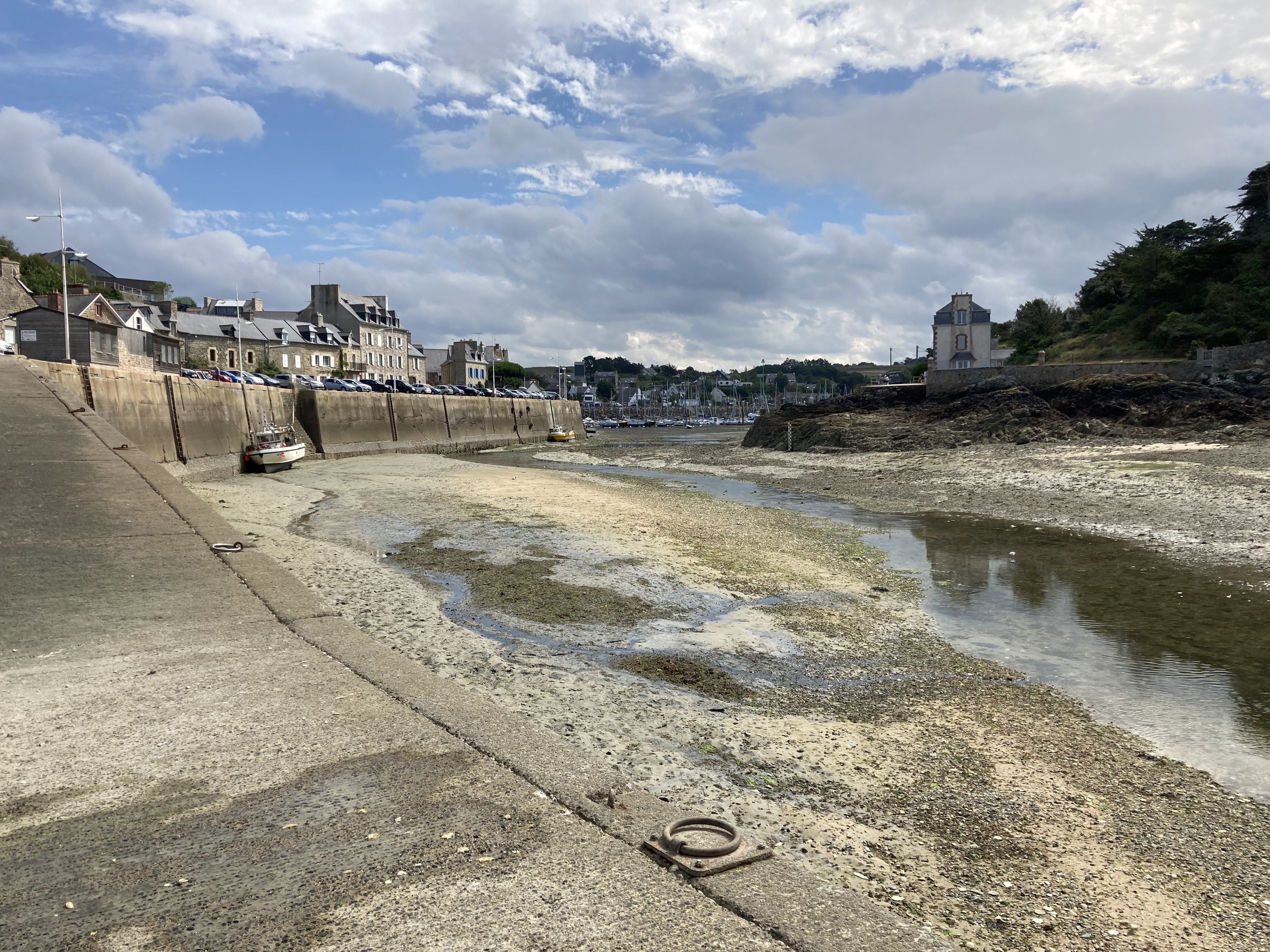 Mercredi 24 août, nous franchissons le barrage de la Rance dont l’estuaire borde Saint-Malo et Dinard, et roulons une heure jusqu’à atteindre la petite commune de Pléneuf-Val-André sur le début des Côtes d’Armor, au-delà du Cap Fréhel.