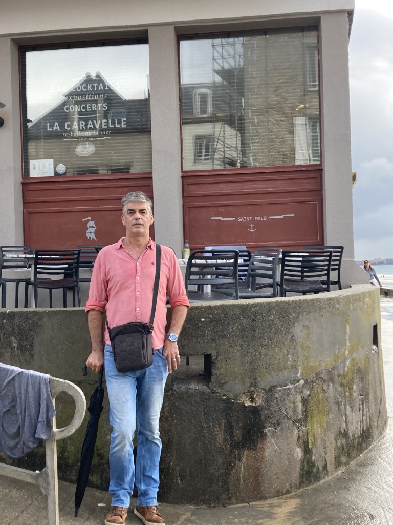 Bercés par le fracas des cahots marins sur les étocs dangereux pour la navigation, nous décidons avec Laurence d’à nouveau rendre visite à notre camarade Djamel, à « l’Olivier », sur la digue de la cité malouine qui nous accueille à marée haute et qui nous offre un mélancolique coucher de soleil sur le « Fort National »…