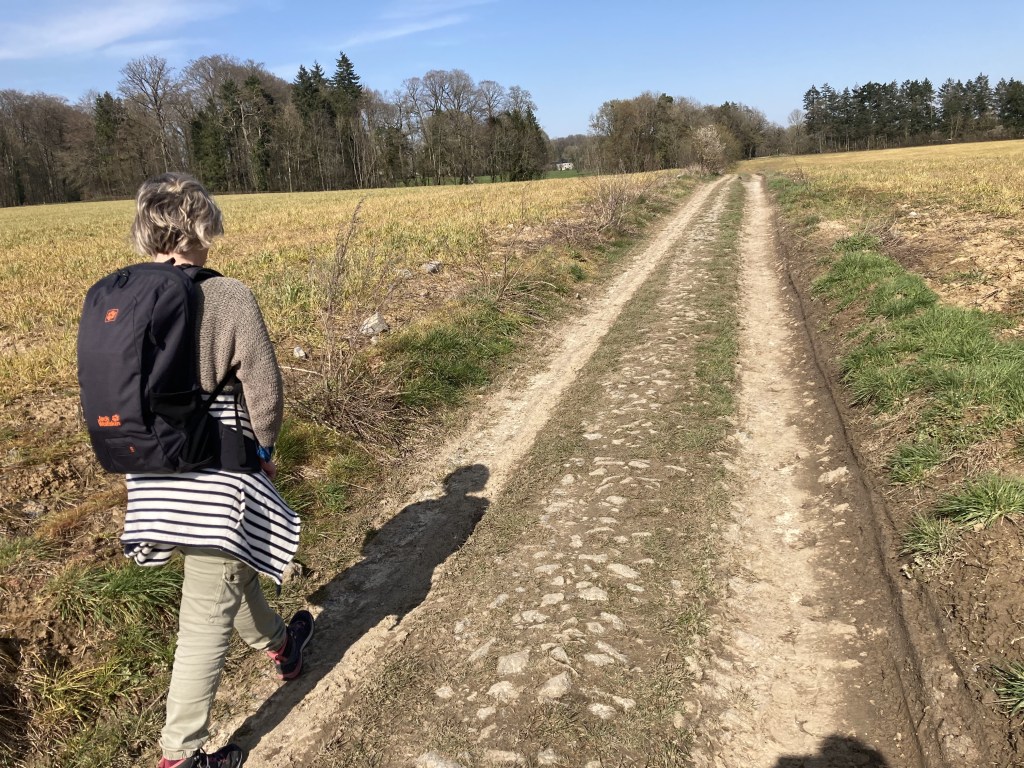Un kilomètre de côte carrossable met un terme au dénivelé positif de cette randonnée, avant que nous ne redescendions vers le village de Celles par des sentiers campagnards et forestiers d’où nous finissons par apercevoir à nouveau les clochers de la Collégiale Saint Hadelin et de son Ermitage.