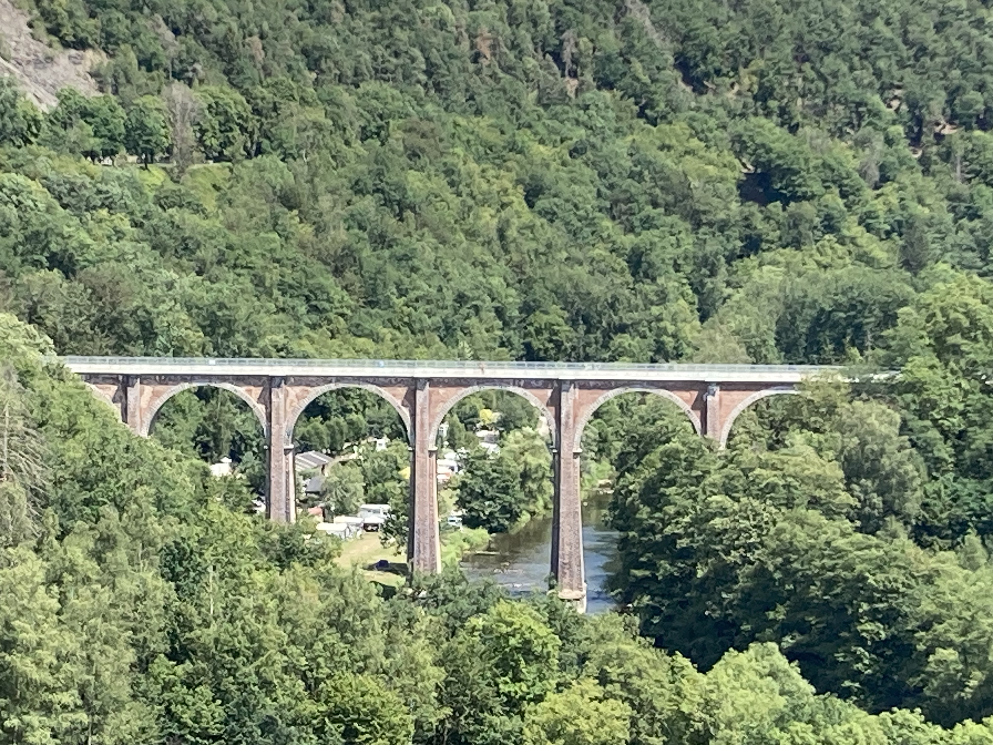 Quittant la place du village par le ravel longeant le coquet parking « Mobilhomes », nous parvenons rapidement sur le majestueux viaduc d’Herbeumont. Composé de sept arches et toisant la vallée de ses trente-huit mètres de hauteur, il nécessita près de neuf millions de briques rouges à sa construction au début du XXème siècle. L’histoire dit que les allemands l’utilisèrent pour ravitailler leurs troupes à Verdun (France) pendant la première guerre mondiale.
