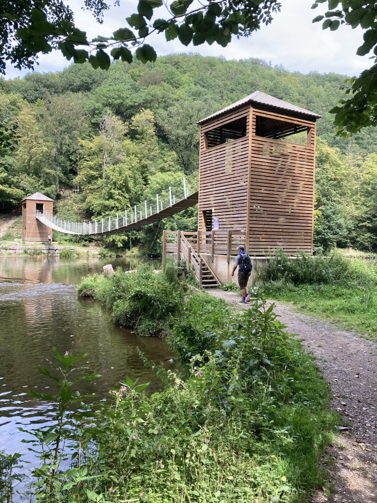 Nous poursuivons notre marche en redescendant vers la « Passerelle de l’Epine » qui enjambe la Semois à l’origine de ces méandres spectaculaires sculptant le paysage calcaire ardennais.