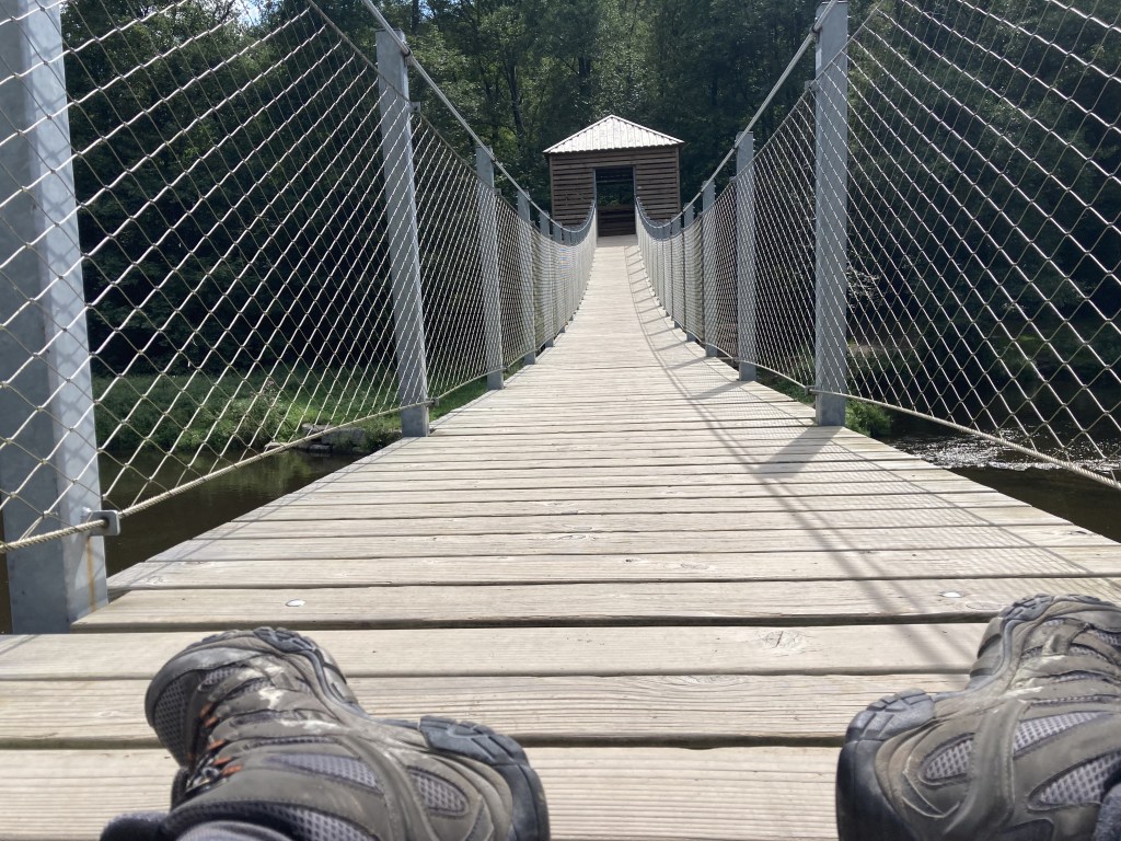 Cette passerelle « branlante », construite en 2020, représente une petite attraction au coeur de la forêt. Franchissant le cours d’eau sur 55 mètres, elle dénote un peu avec le cadre naturel mais nous n’y résistons pas.