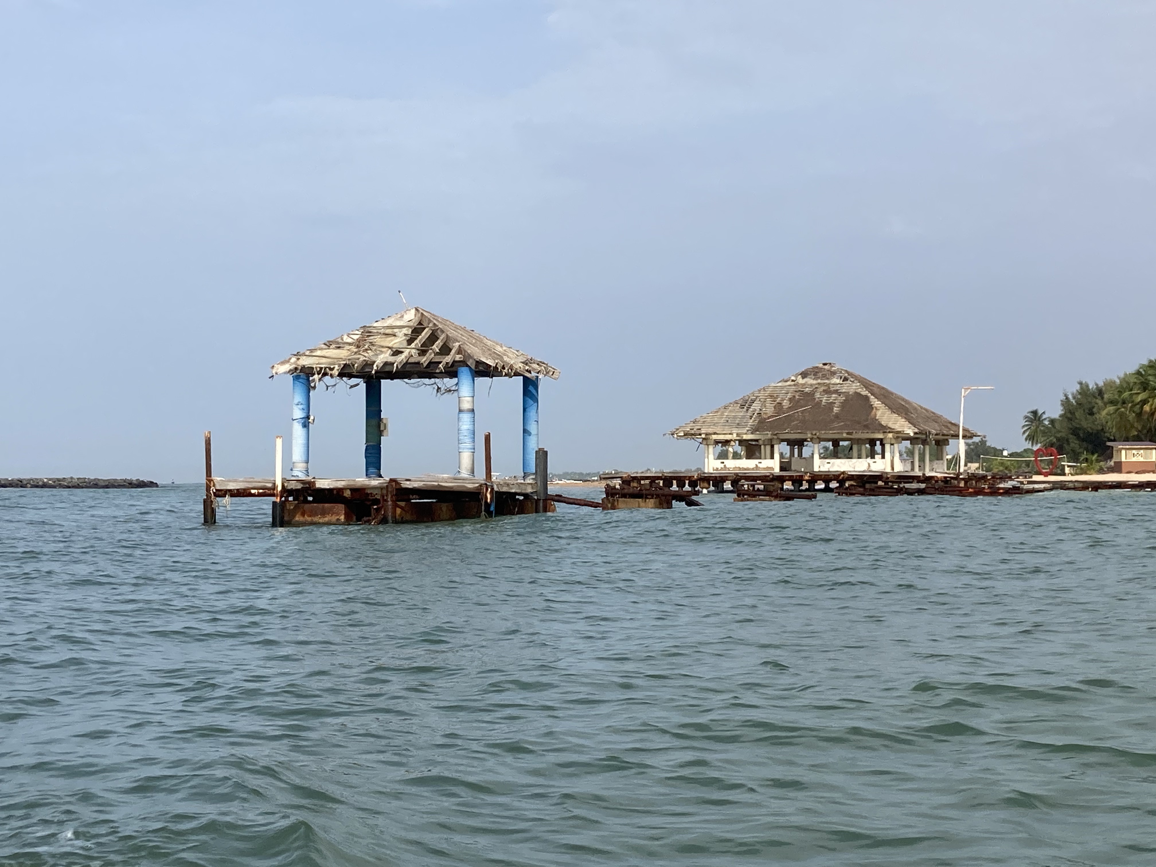 La côte est jalonnée d’hôtels abandonnés depuis huit ou neuf ans, nous explique notre sympathique guide. La plupart des infrastructures sont très dégradées et offrent un paysage interpellant.