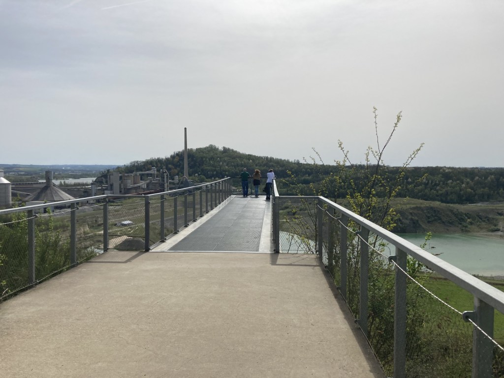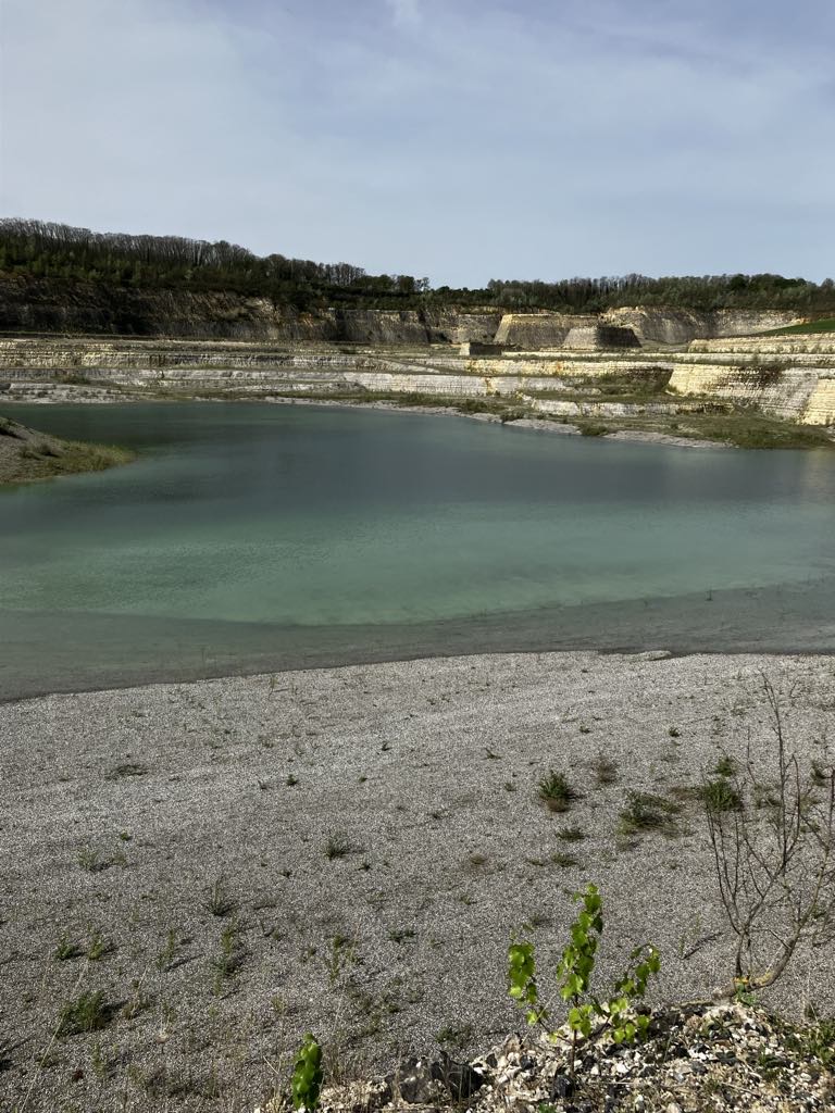 Un promontoire galvanisé et spacieux offre une vue imprenable sur les centaines d’hectares d’un canyon artificiel digne des grands espaces américains. Les anciennes installations industrielles trônent encore aux abords de l’entrée du cratère béant et gigantesque dont les eaux de ruissellement d’un bleu émeraude tapissent les fonds rocheux et poreux, au plus grand bénéfice de la nappe aquifère.