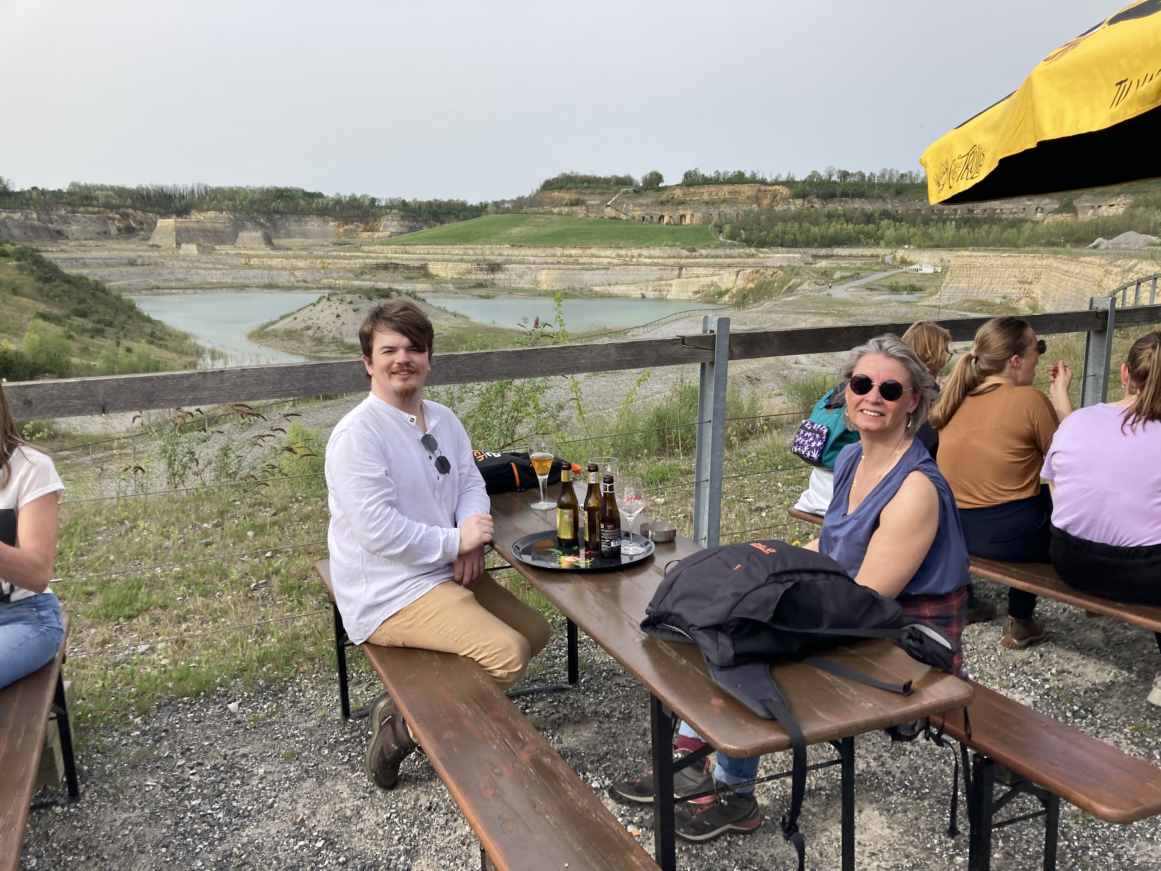Le coeur léger, la douce chaleur exceptionnelle en cette saison conduit nos pas vers la fin de la boucle qui ceint le site carrier. Regagnant la brasserie jouxtant le site désaffecté de la ENCI, nous dégustons une bonne bière spéciale, attablés au plus près du bord escarpé de cet exceptionnel biotope pseudo-naturel.
