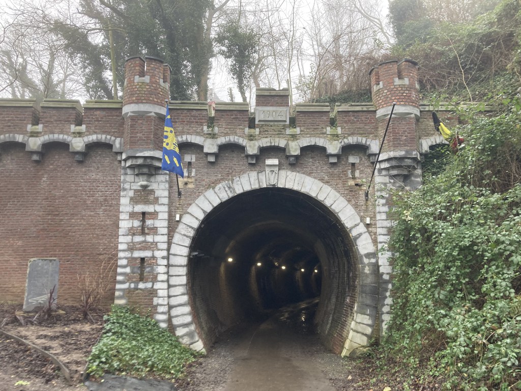 Dès la sortie de ce tunnel, une plaque commémorative mentionne la tragédie ferroviaire qui s’y joua le 5 octobre 1991. En effet, depuis le milieu des années 70, « Li Trimbleu », train touristique composé d’une locomotive et de trois wagons, reliait « Blégny Mine » à « Dalhem », en contrebas. Ce samedi là, 117 voyageurs prirent place à bord, alors que sept d’entre eux allaient périr…