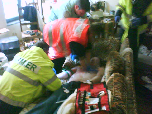 Le central radio nous informe qu’un homme vient de téléphoner à la police car il est très inquiet de ne plus avoir de nouvelles de son copain. L’adresse nous est communiquée, ce n’est qu’à deux-cents mètres de notre position.