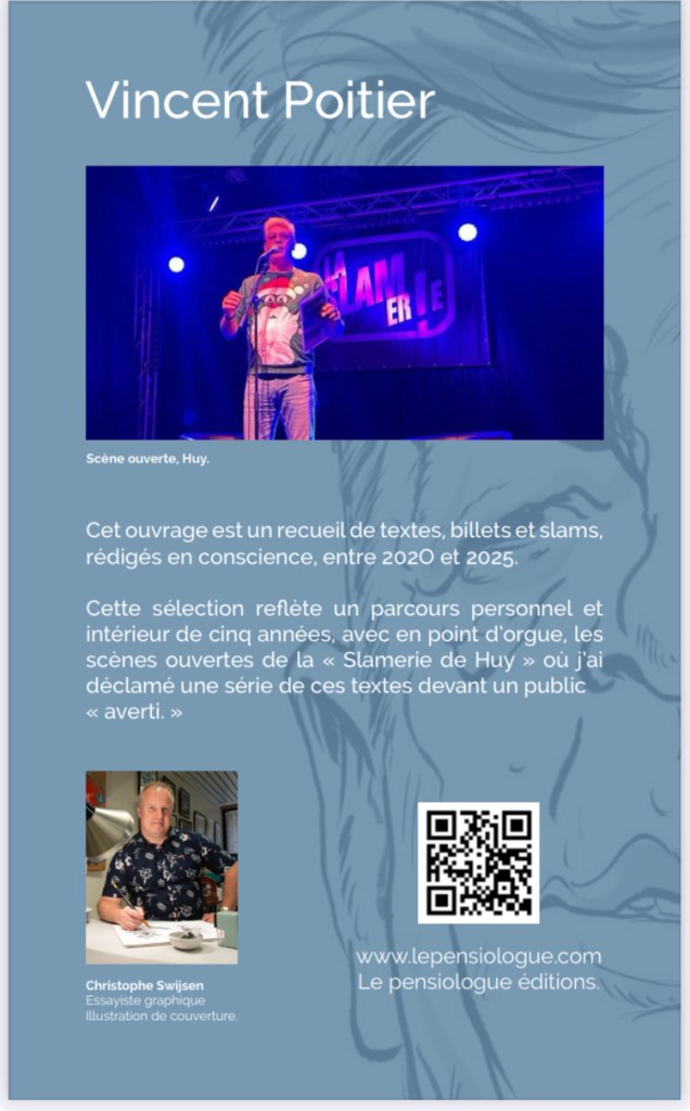 En janvier 2025, j’ai édité un nouvel ouvrage recueil (format poche 11X18 cm), compilant une sélection de mes textes, billets et slams rédigés entre début 2020 et fin 2024, sous le titre: