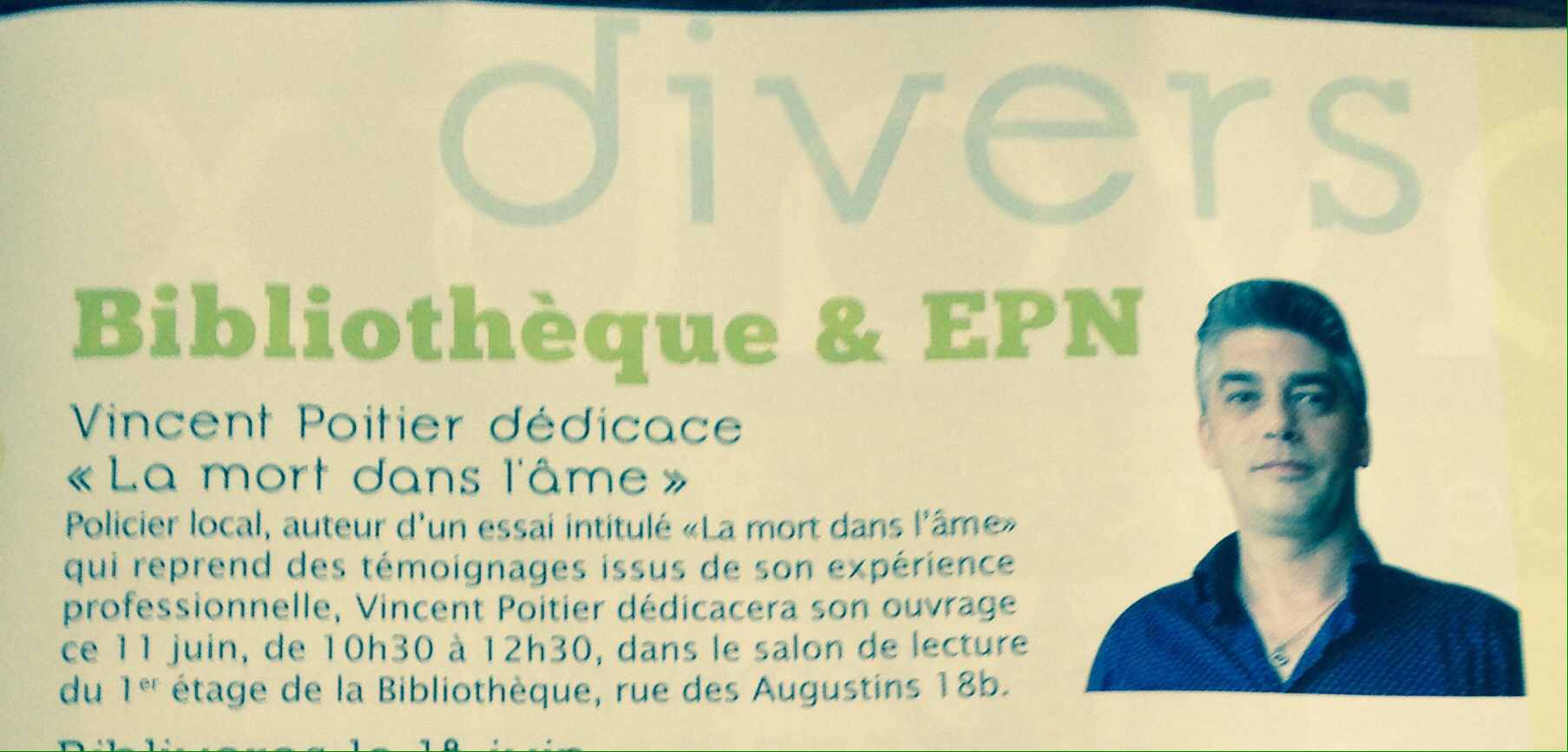 Séance de dédicaces du 2/7/2016, « Le Policiologue » (essai 2), Hôtel du Fort, Huy-Belgique