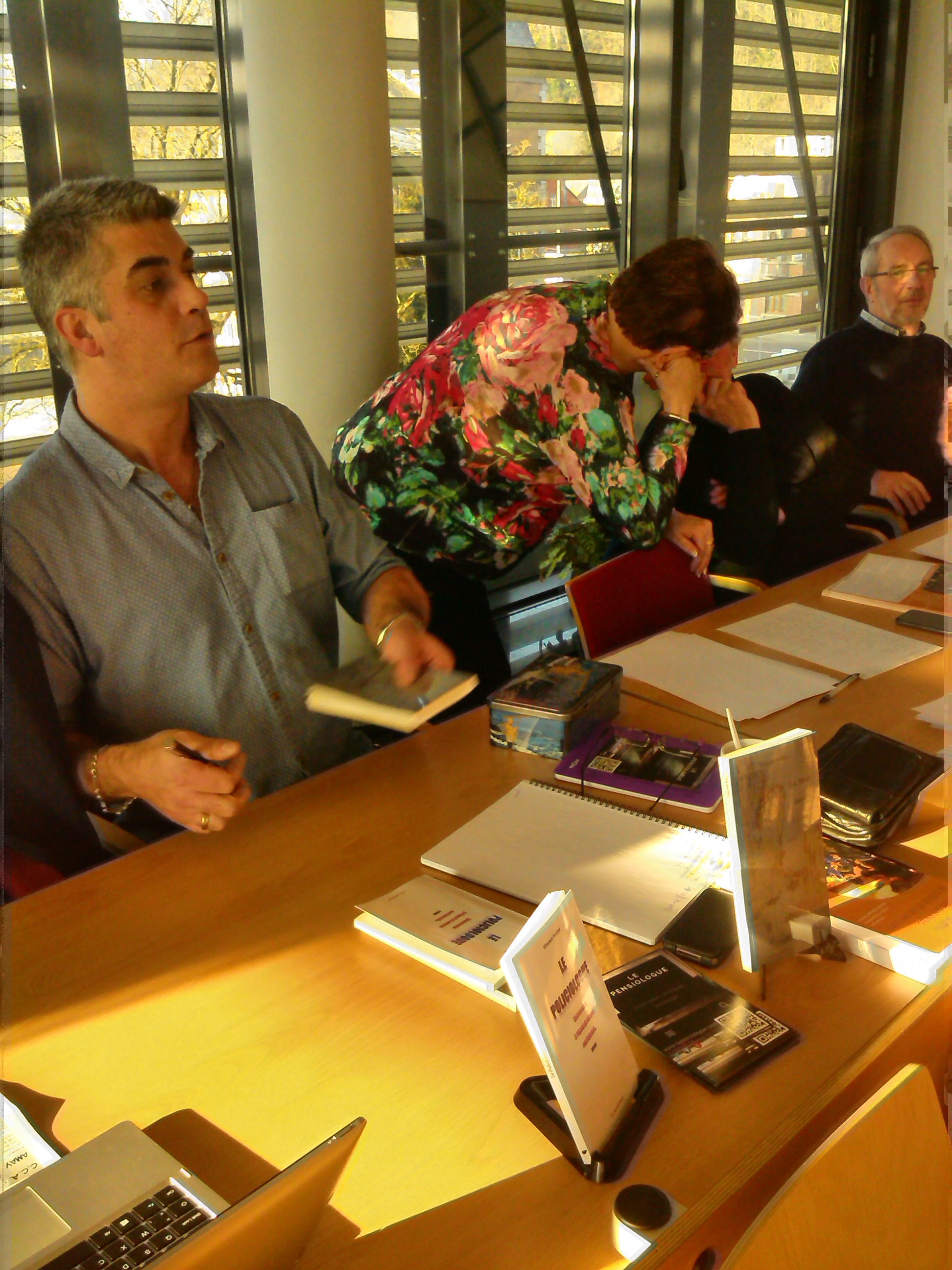 Dédicace essai 1, librairie « La Dérive », Huy (Belgique), 23/4/16 et Hotel du Fort (16/4/16)