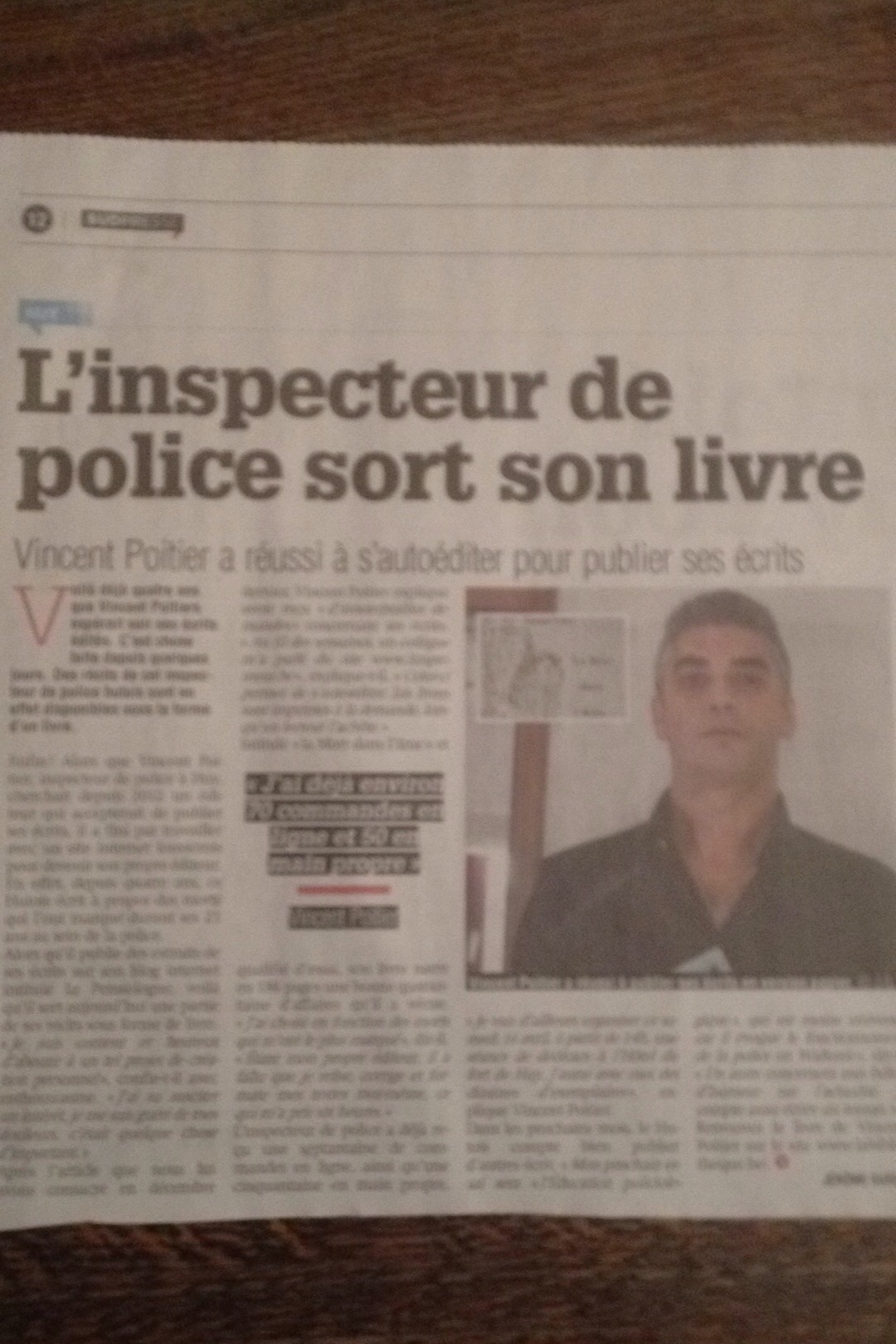 Article 24/12/2015, sur « La Mort « dans l’Ame »(1 er essai), journal « La Meuse » (Huy-Waremme)